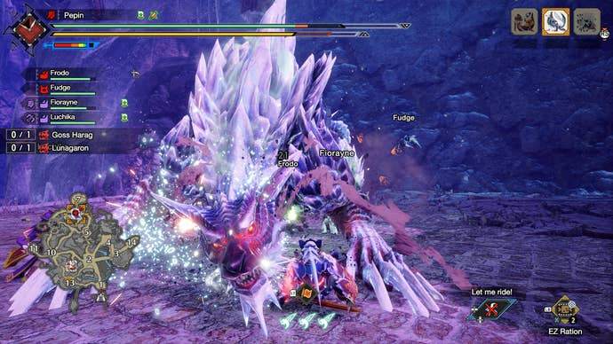 I won’t spoil the encounters here, but the new monsters are fun, ferocious, and between them tick all the boxes you’d expect. It’s like the developers wanted to make a graph of all the different monster types in the game, then plonk a new one at the extreme end of every point; there’s a quick, punishing one, there’s a lumbering, powerful one, there’s an Elder Dragon, and there are… more. But I won’t ruin the surprise. These newcomers, on top of a rogue’s gallery of returning beasts that made my 3DS-loving heart jump for joy make Sunbreak and Rise maybe my favourite selection of monsters in any MonHun title. Yes, even more so than World/Iceborne.
