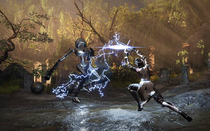 Now, there are blemishes here and there with that bread-and-butter action in SteelRising. What was clear to me through two separate playthroughs is that many weapons feel somewhat clunky to fight with. Stiff and nonliquid. Now, this may well have been intentional from the team at Spiders, seeing as the extraordinary addition to the setting of revolutionary France are the walking (in your case talking) animatronics making their way around Paris. But the occasional slow and clunky attack strings on non-uber massive armaments turned me off several options. I did, however, find solace in agility weapons, which are agile in your hands and sometimes make use of ballet moves which was a lush surprise amidst a widely unappealing selection.