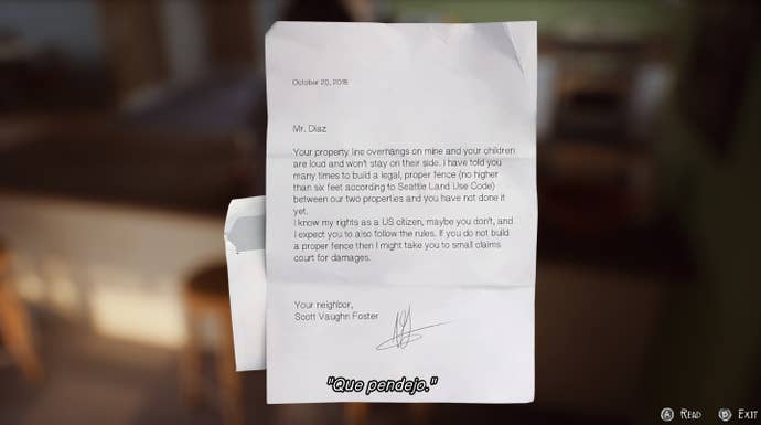 This probably makes me sound neurotic. But I'm 25 going on what feels like 35, and when I was Sean's age, I was listening to these very bands because they were semi-new. With such song choices just in episode one, I'm counting down until Grizzly Bear's "Foreground" soundtracks a sad moment, or an episode opens with a Peter Bjorn and John song. It's not bad licensed music, it just feels out of place for a game about a 16-year-old set in 2016. Sean strikes me as the type of kid who's really into Mac Demarco, or something else that makes sense for a teenager his age.