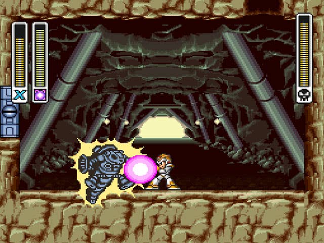 Mega Man X's foundation and mechanics are sturdier than a titanium outhouse, but its graphics and sound deserve their own accolades. The classic Mega Man series on the NES was never a slouch in the visuals department, but Mega Man X experiments with detailed backgrounds and huge bosses. Seeing Flame Mammoth's bulk tower over X is intimidating when you're used to 8-bit Robot Masters who aren't much taller than Mega Man.