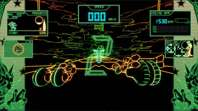 Each level is one of six different "Death Balls," the fictional cartridges that go into the Death Drive Mk. II. Though there's a unique gameplay twist in each level, the arcade-style combat is present throughout all of Travis Strikes Again. The fun is in the individual gimmicks, which are as small as a simple shift in camera perspective, and as large as entire racing minigames. There might not be enough change level-to-level to say that each stage feels like an entirely new game, but there's a lot to appreciate whenever Travis jumps between levels.